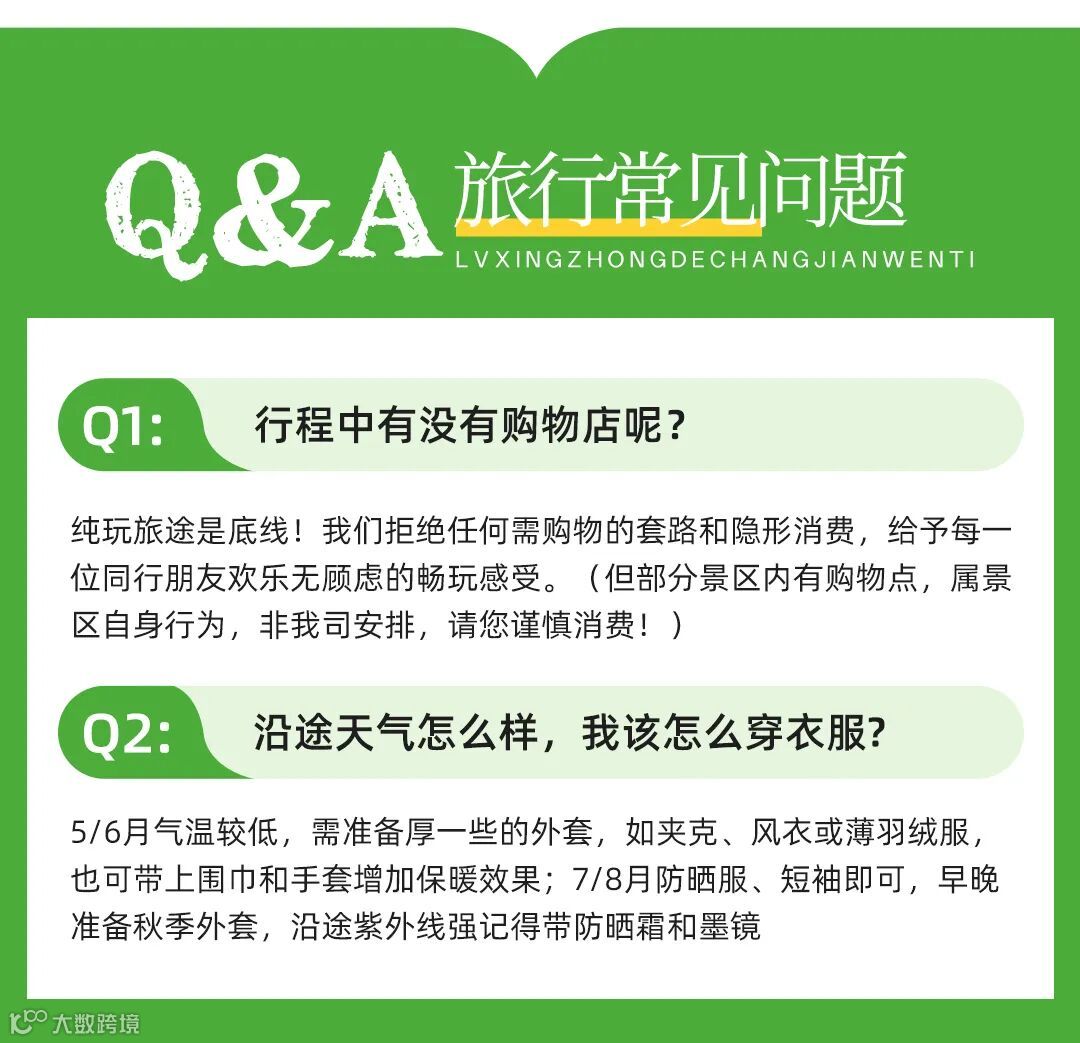 注意:以上行程时间及顺序供参考,受天气、交通、景区调控及队员体能等不同影响有可能会调整,以领队实际安排为准。
