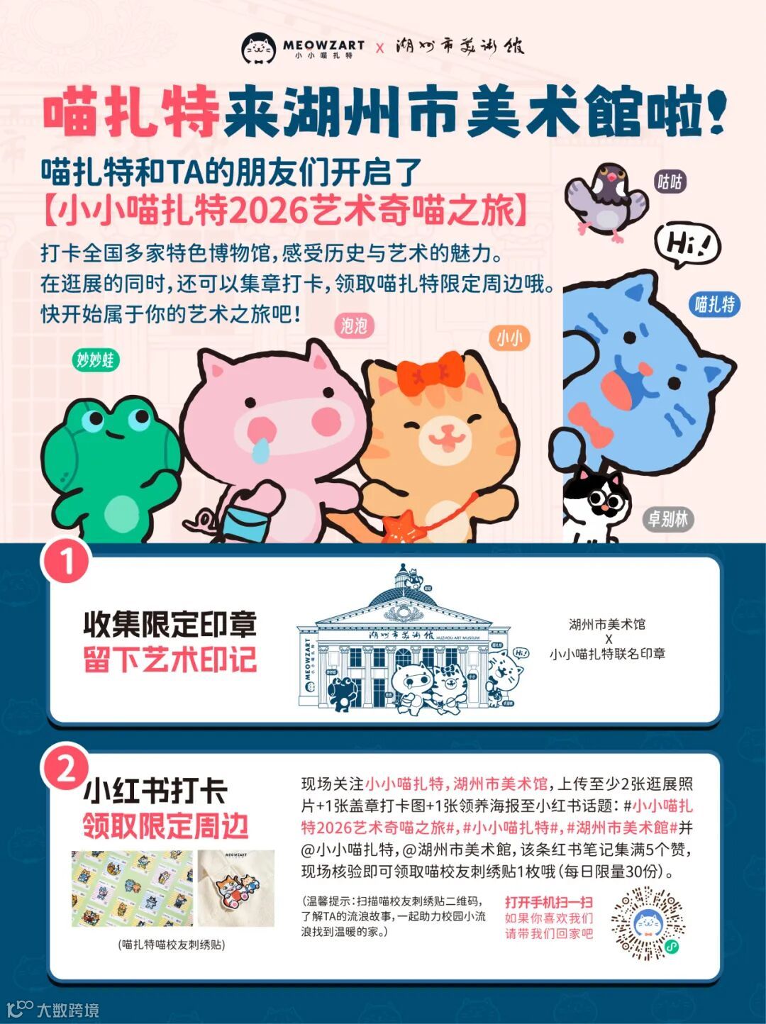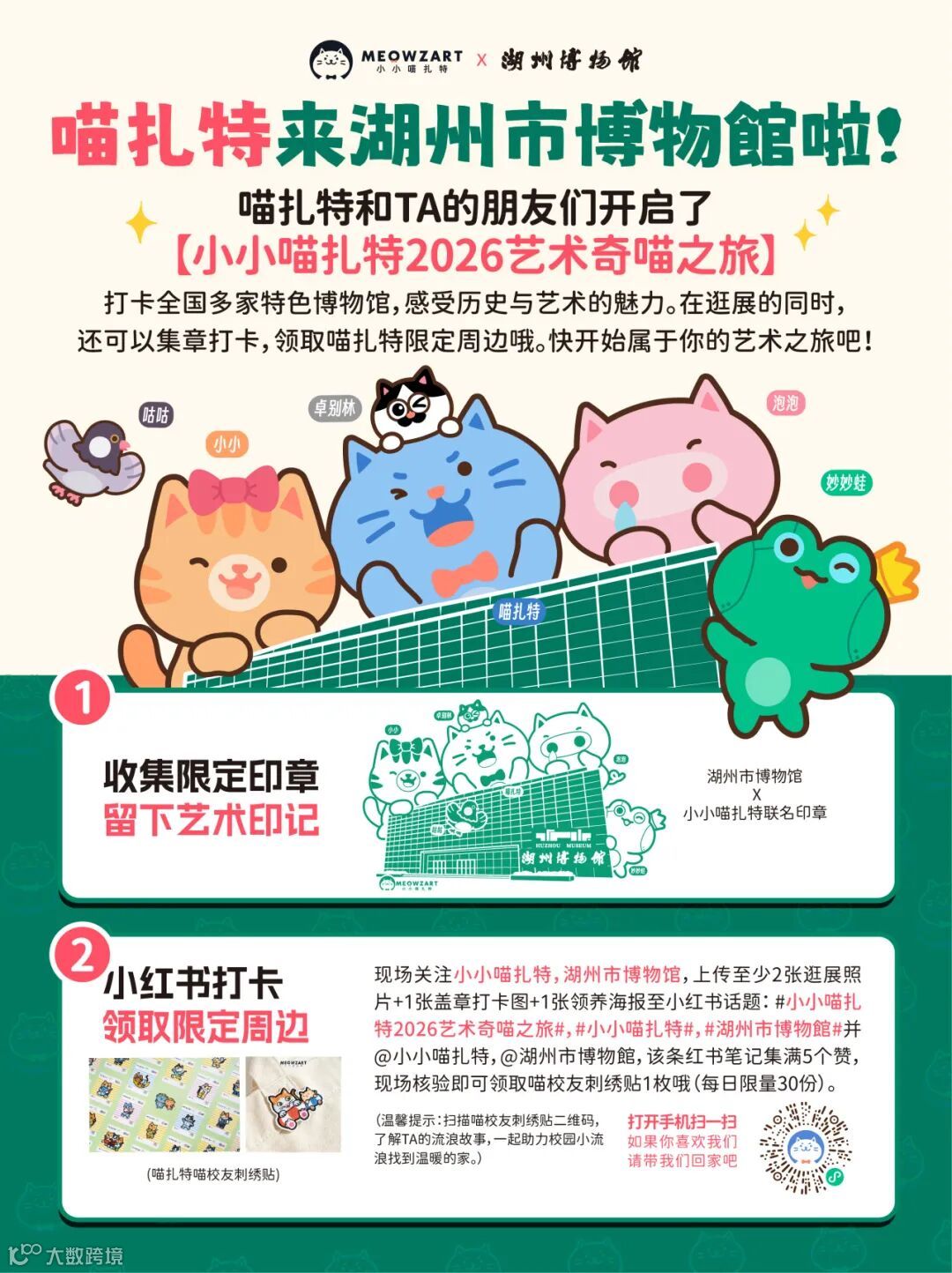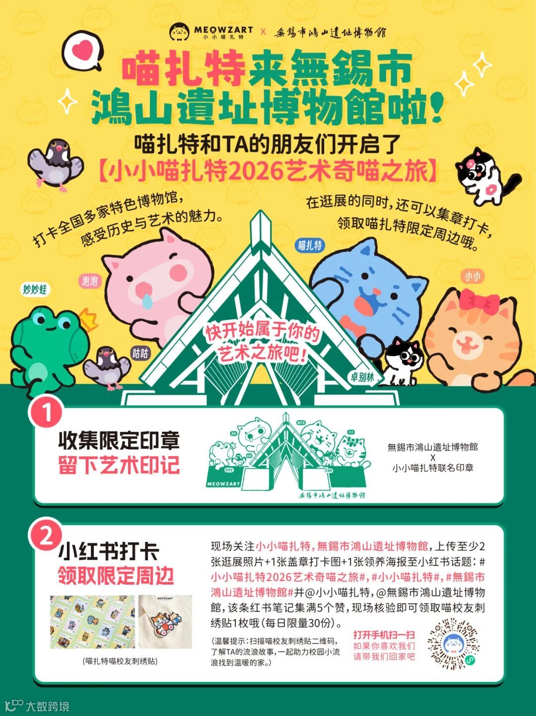 爱艺术的你们准备好了吗,跟喵扎特一起用脚步丈量文明,用印章收藏时光。【小小喵扎特2026艺术奇喵之旅】三大亮点,等你解锁!