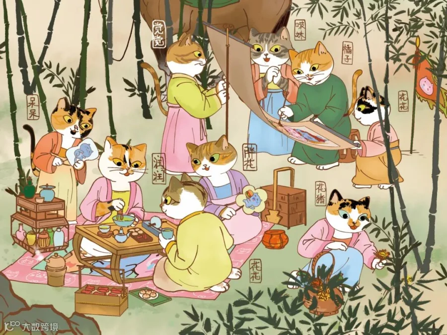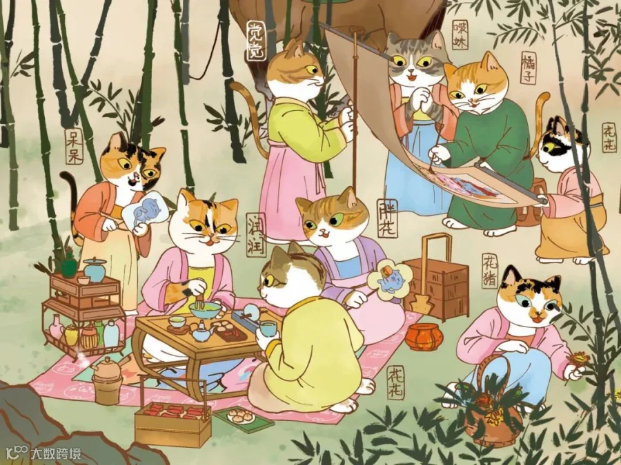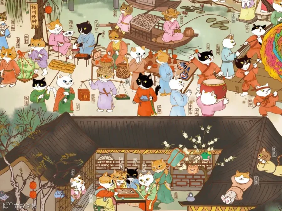 小小喵扎特在2024年创作并推出“非遗版校园百喵图”, 这幅长达15米的画卷,可能是当今全球第一幅以校园流浪猫为主人公创作的汇聚中国近百个非遗项目的全手绘画作!这些喵校友身着中国古代的精美服饰,萌趣演绎近百个极具中国和地方特色非遗项目。