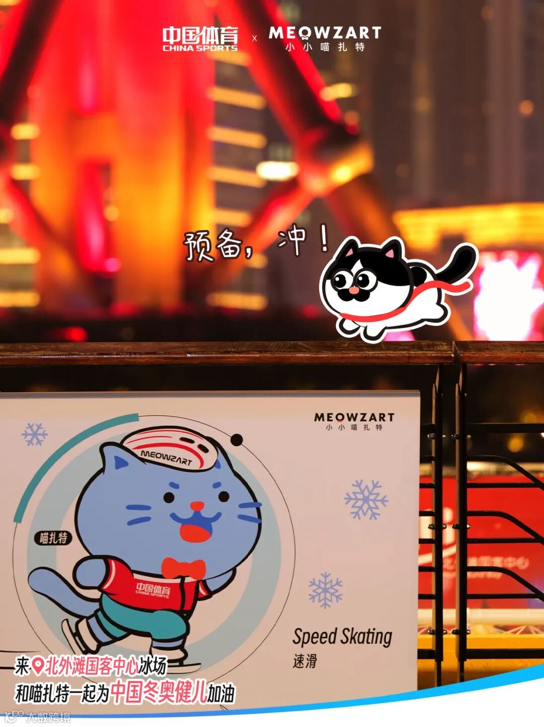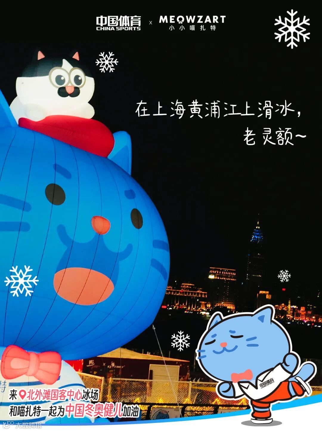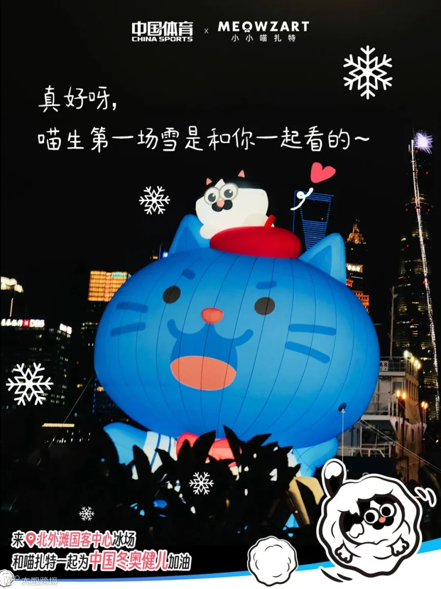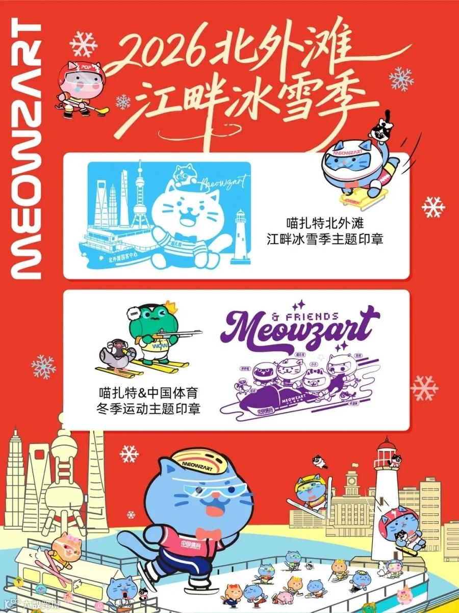 现场打卡即可解锁两枚喵扎特“冰雪季限定印章”,分别是“喵扎特x 中国体育|冬奥雪车款”,“喵扎特x国客中心|江畔冰雪季款”。