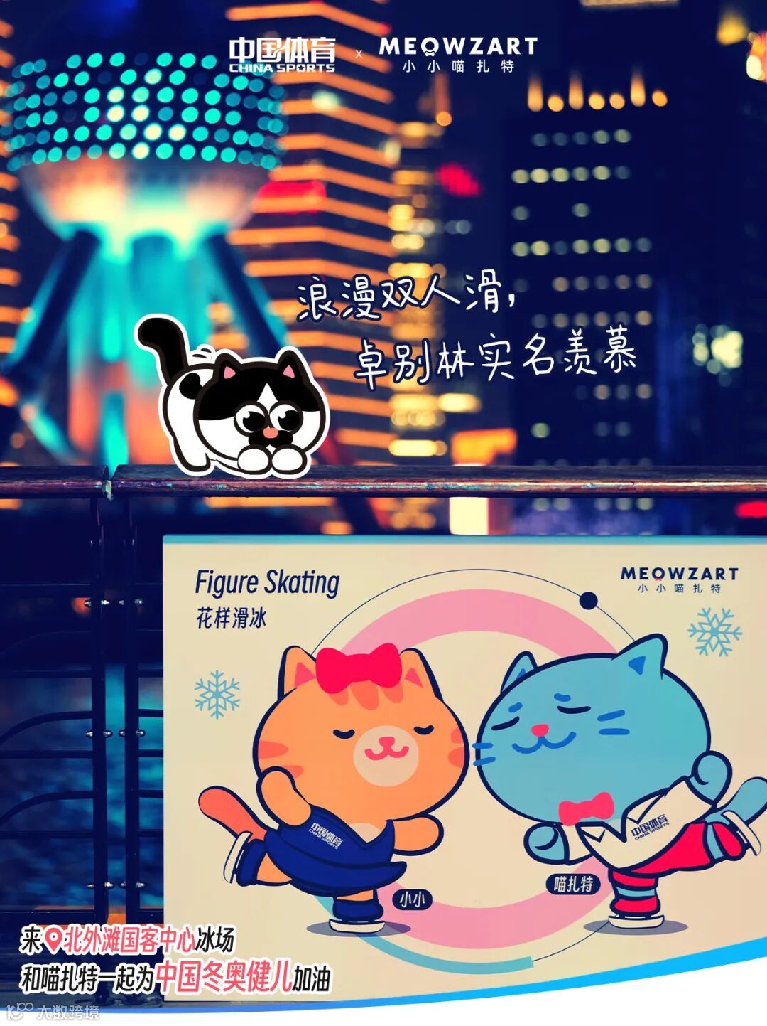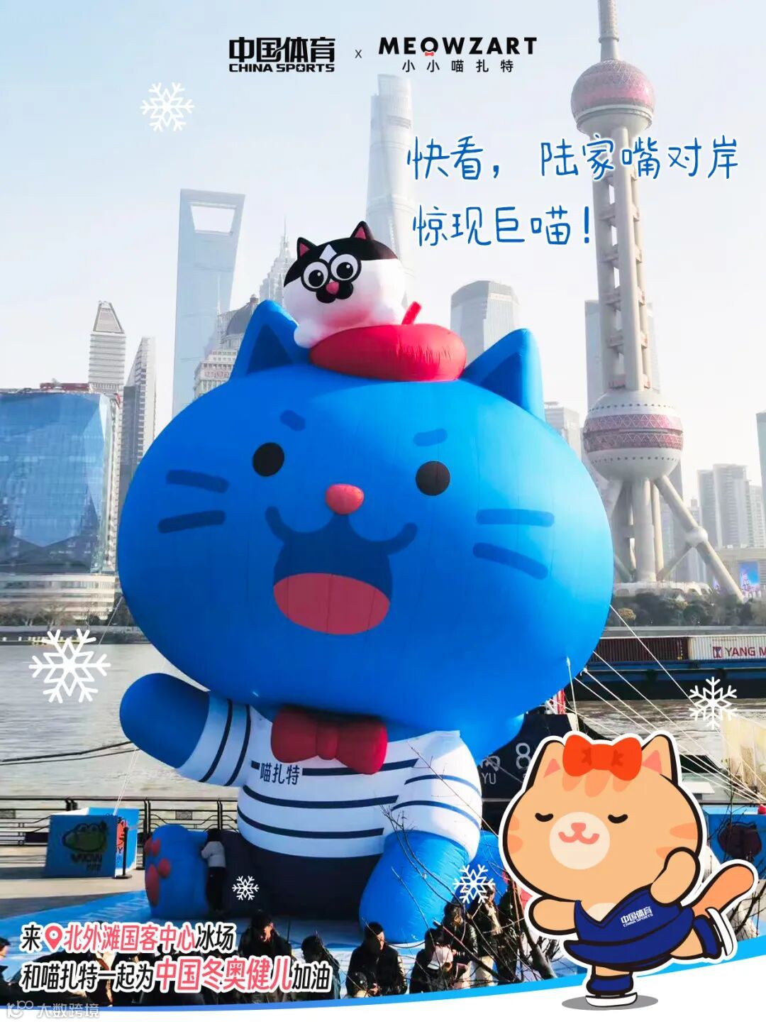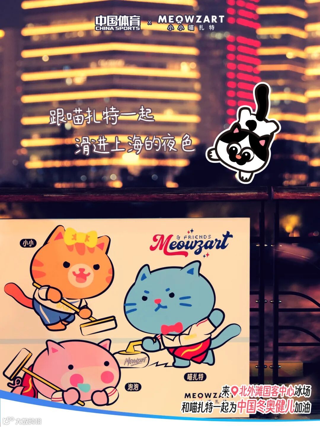 现场打卡即可解锁两枚喵扎特“冰雪季限定印章”,分别是“喵扎特x 中国体育|冬奥雪车款”,“喵扎特x国客中心|江畔冰雪季款”。
