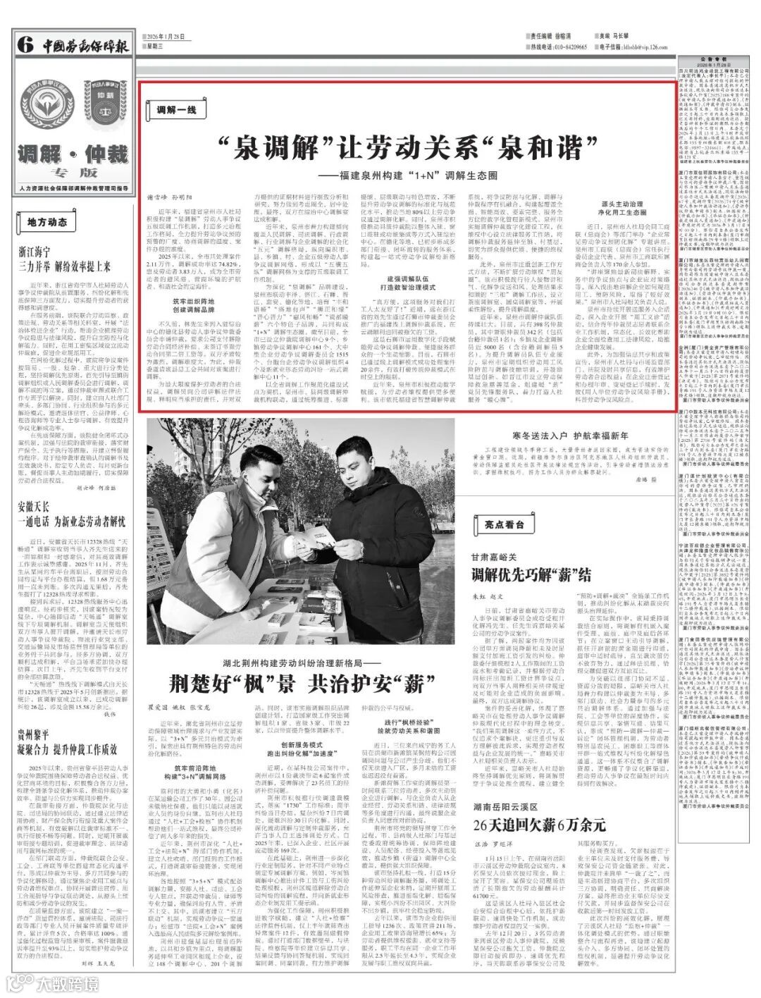 近年来,福建省泉州市人社局积极构建“泉调解”劳动人事争议五级联调工作机制,打造多元治理工作格局,全力提升劳动争议预防预警的广度、协商调解的温度、案件办理的准度。