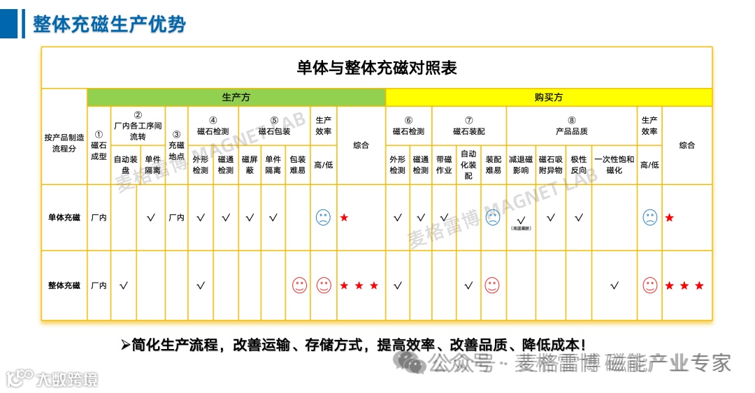 目前日本、欧美等主流厂商的整体在线充磁工艺应用普及率较高。近年国内很多企业认识到整体充磁改造所带来的降低成本、提高品质改善效率的巨大优势,也开始逐步采用整体充磁技术。整体充磁工艺将成为驱动电机研发、生产制造过程中成熟的主流技术工艺。