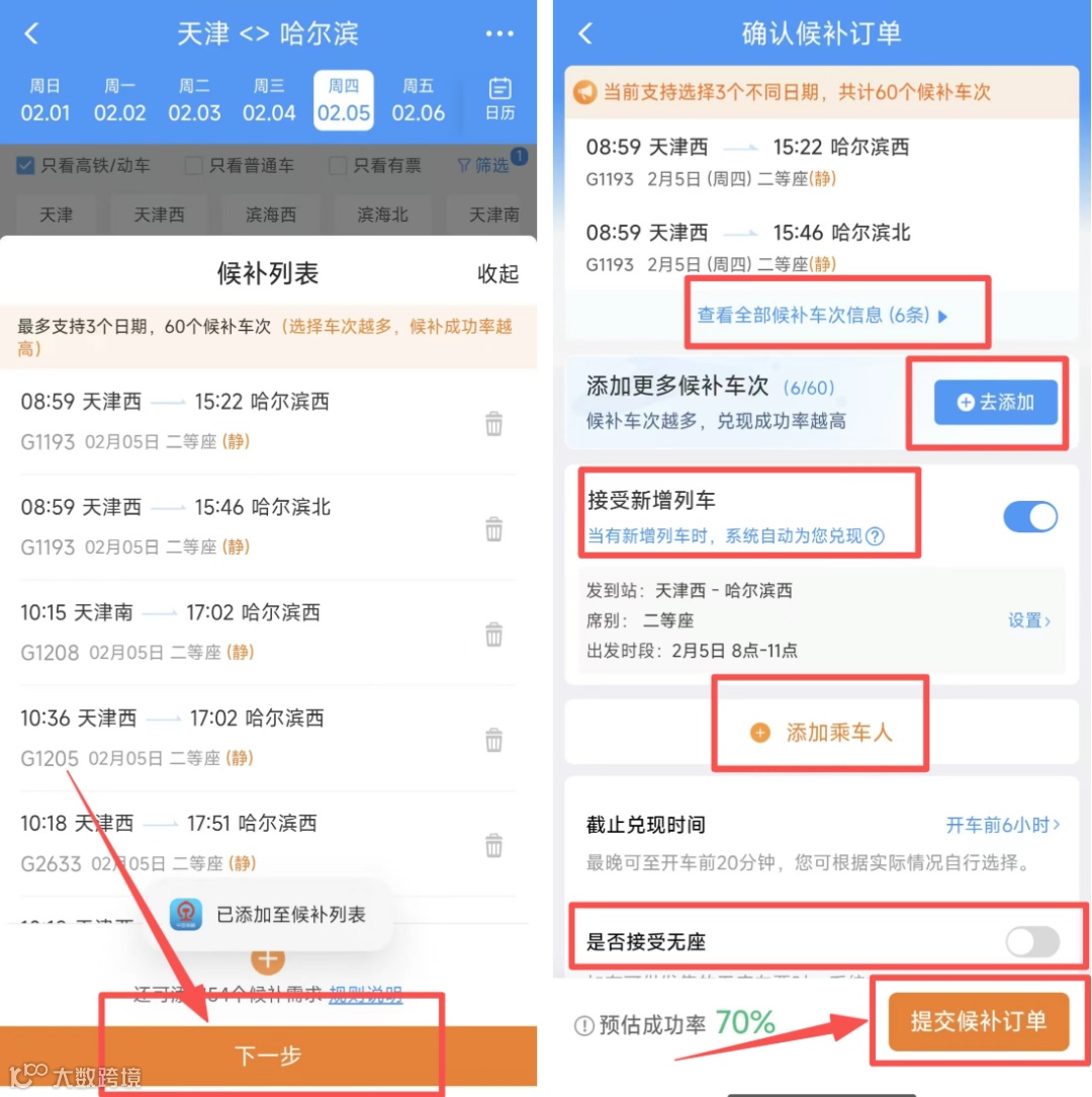 如果旅客选择接受新增列车,还可以进一步提高候补成功率。