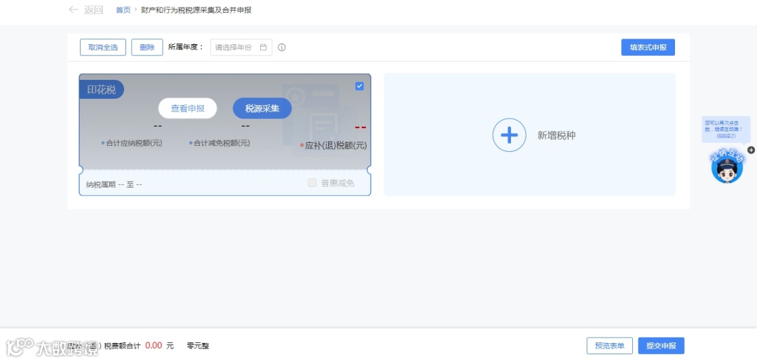 - 【我要办税】—【税费申报及缴纳】—【财产和行为税税源采集及合并申报】