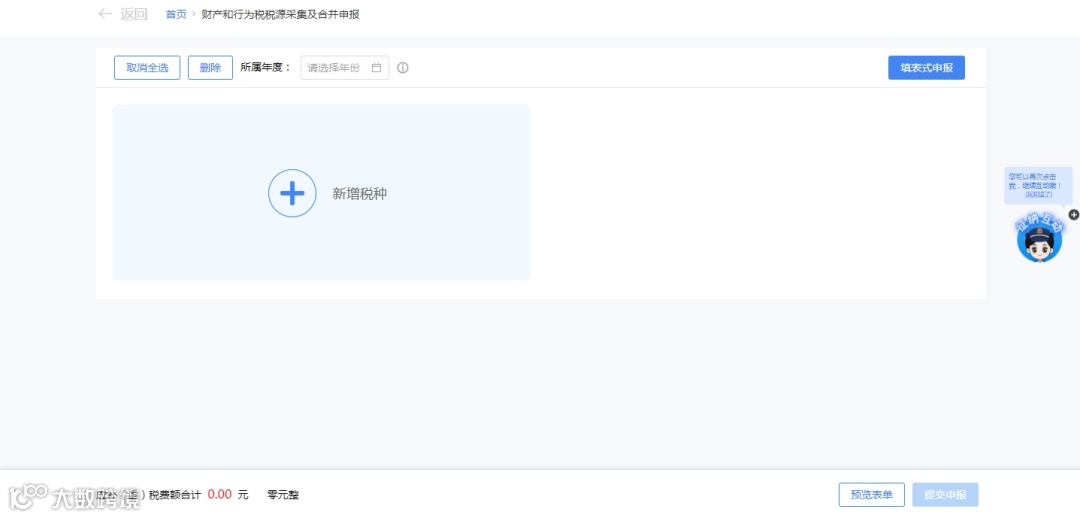 纳税人可点击【新增税种】卡片中的【税源采集】,或直接选择【填表式申报】进入税源信息采集页面。