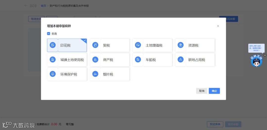系统自动显示本期应申报税种及相关信息(如应纳税额、减免税额等),纳税人可勾选一个或多个税种,确认无误后点击【提交申报】完成操作。