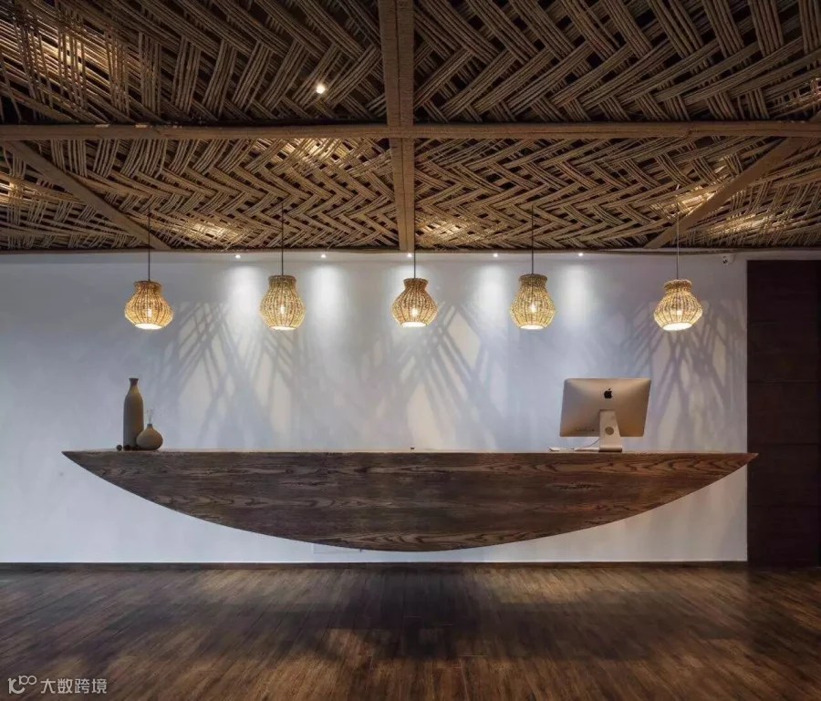 ▲ 在大堂里,前台化作了一叶扁舟,漂浮在了空气里,像有水充盈在四周。