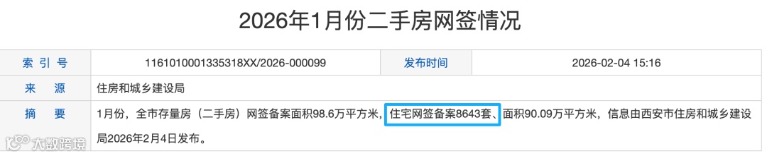2026年1月的二手房成交数据出来了: