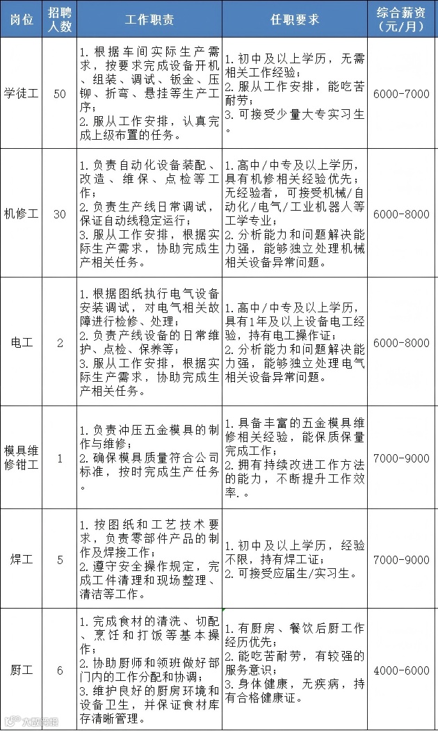 3.就餐:公司有食堂,安全卫生,菜品丰富,操作工享有伙食补助;
