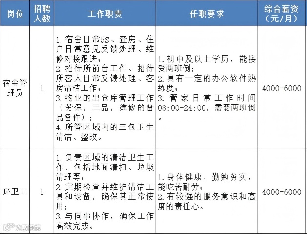2.住宿:公司标配住宿(4-8人/间、配有独立卫生间、热水器及空调,管理人员1-2人/间);