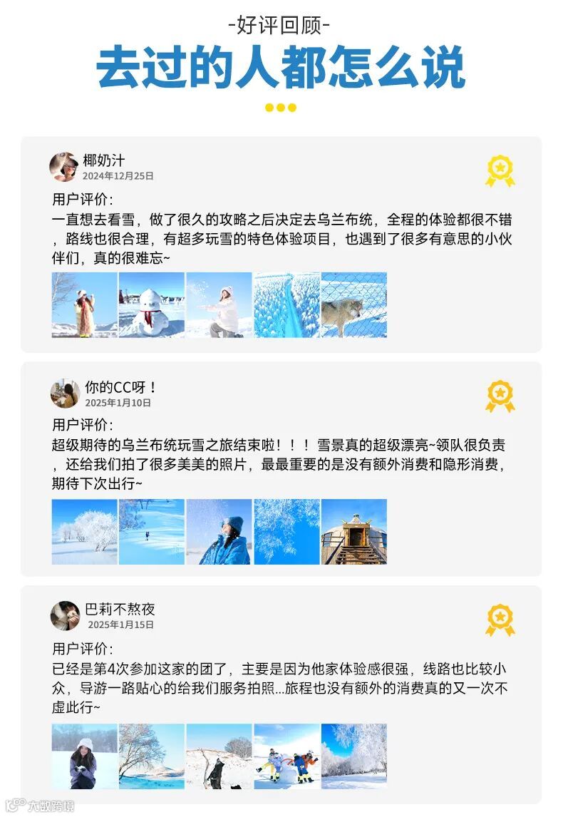 3、门票:乌兰布统和塞罕坝冬季不收费,如需收费请自理