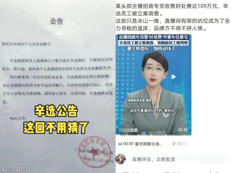 辛选官方发布公告:辛选集团前员工郝涛涛(辛选集团商品中心负责人)已于数月前从辛选离职,不再担任任何职务。即日起,其所有个人直播