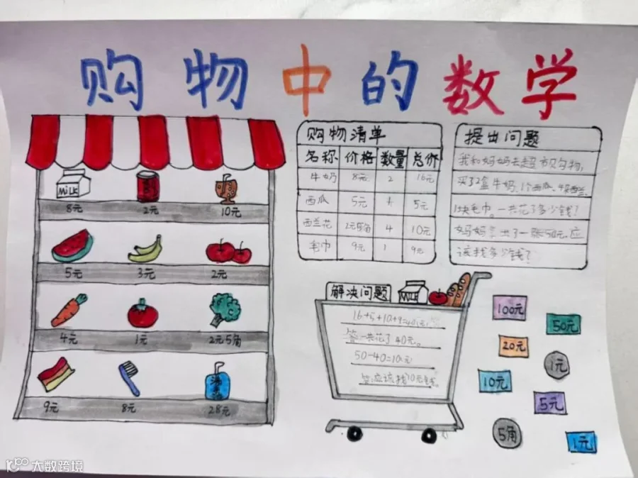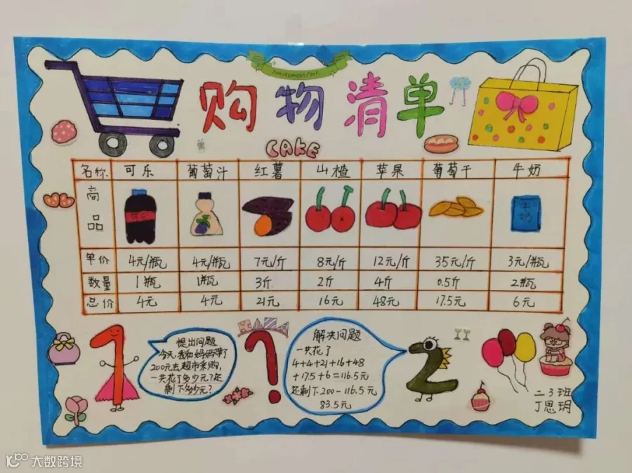 三年级的“我是小小采购员”综合实践活动,让孩子们在50元预算内挑战“完美午餐采购”。孩子们先通过设计统计表、绘制条形统计图,精准掌握小组组员的饮食喜好;再分组开展线上线下价格调研,整理详细的餐品价格清单;最后运用估算与精确计算,在预算约束下搭配兼顾口味、营养与性价比的餐品组合,形成完整的采购方案。活动中,孩子们不仅巩固了数据统计与运算知识,更学会了在实际场景中权衡决策,提升了调研能力与团队协作水平。