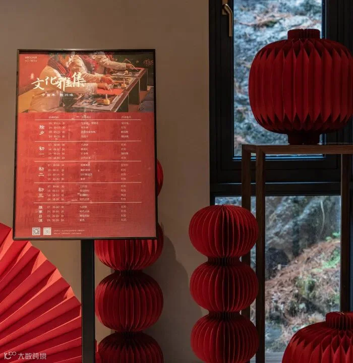 春节期间,宾馆推出“骏马越千峰,云端纳新福”为主题活动。写春联辞旧迎新、剪纸传递吉祥祝愿、制作徽州鱼灯寓意年年有余、参与徽墨描金传承匠心文脉,还有糖葫芦制作品味甜蜜团圆、包饺子活动祈求安康顺遂,让远道而来的客人深度体验源远流长的徽州文化。