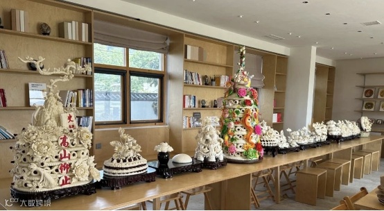 作品《人生的历程》以面团为媒介,通过“人生五阶段”的立体造型,创新性地拓展了传统花馍的艺术表达。在传承古法艺术的基础上,王利贞将天然素色与现代审美相结合,使作品既保持传统韵味,又富有时代气息。
