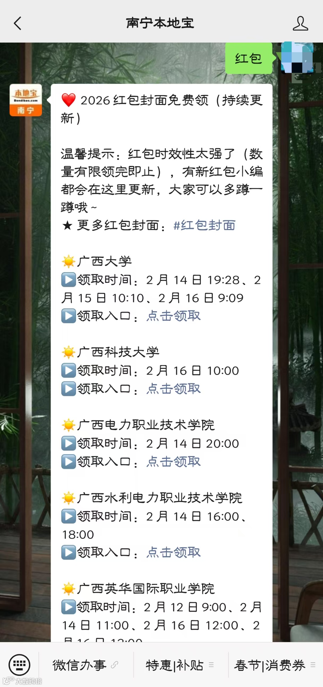 ✅领取方式:在广西科技大学官方文章领取,或者关注【南宁本地宝】公众号,发送【红包】,即可直达红包封面领取入口。