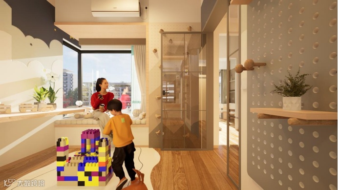 儿童生活圈,致力于创造视野通透、动线流畅且充满情感张力的趣味空间。通过开放的设计将孩子的欢声笑语与盎然生机自然引入公共区域,从而激活整个家庭的能量流动。