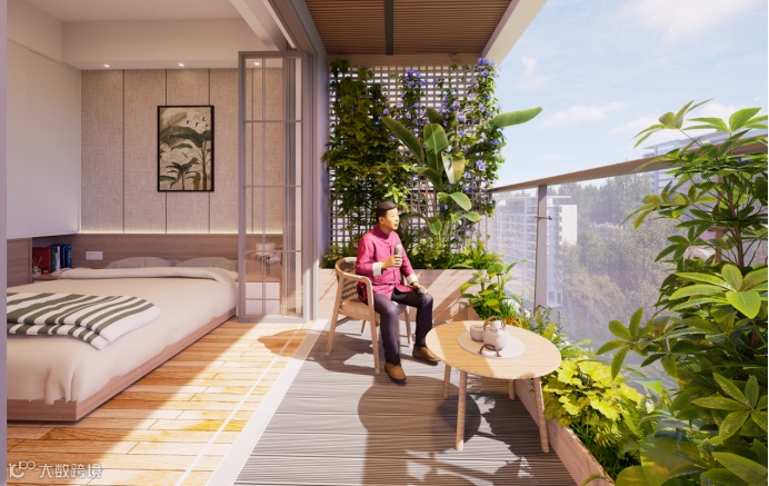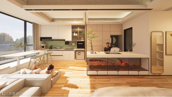 年轻人生活圈配置全场景复合套间,集创意主卧、小起居室、复合衣帽间与书房、开放西厨与茶水吧、独立主卫及玄关等功能于一体,为男女主人提供相对独立的居住体验。