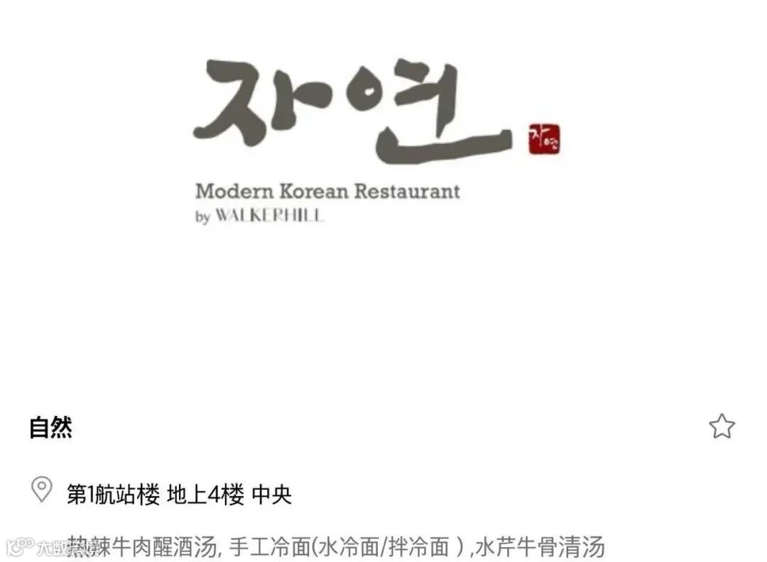亮点介绍: 位于T2免税区的“自然之味”,可谓是登机前享用韩式定食的理想选择。招牌烤肉拌饭将调味烤肉与清脆野菜均匀拌开,芝麻油的香气与韩式辣酱的风味瞬间激活味蕾,荤素搭配平衡得当。若你在出境前想找一顿清爽又无负担的餐食,这里值得你专程前往。