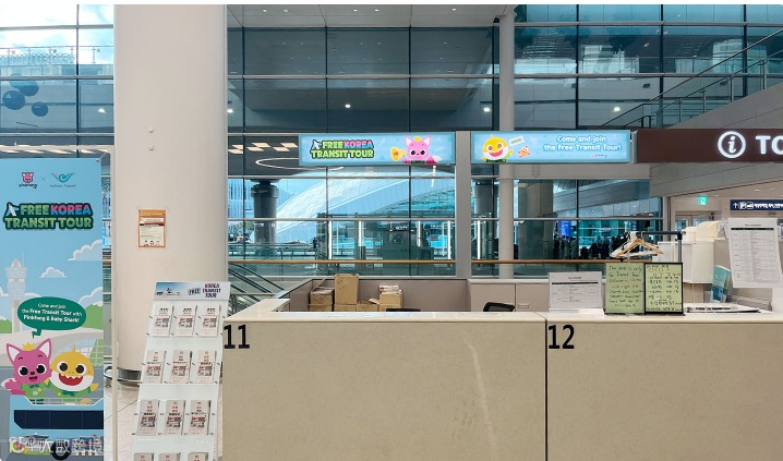 1楼转机观光登记服务台:<入境审查后>1号、2号出口附近,服务台编号为19、20号