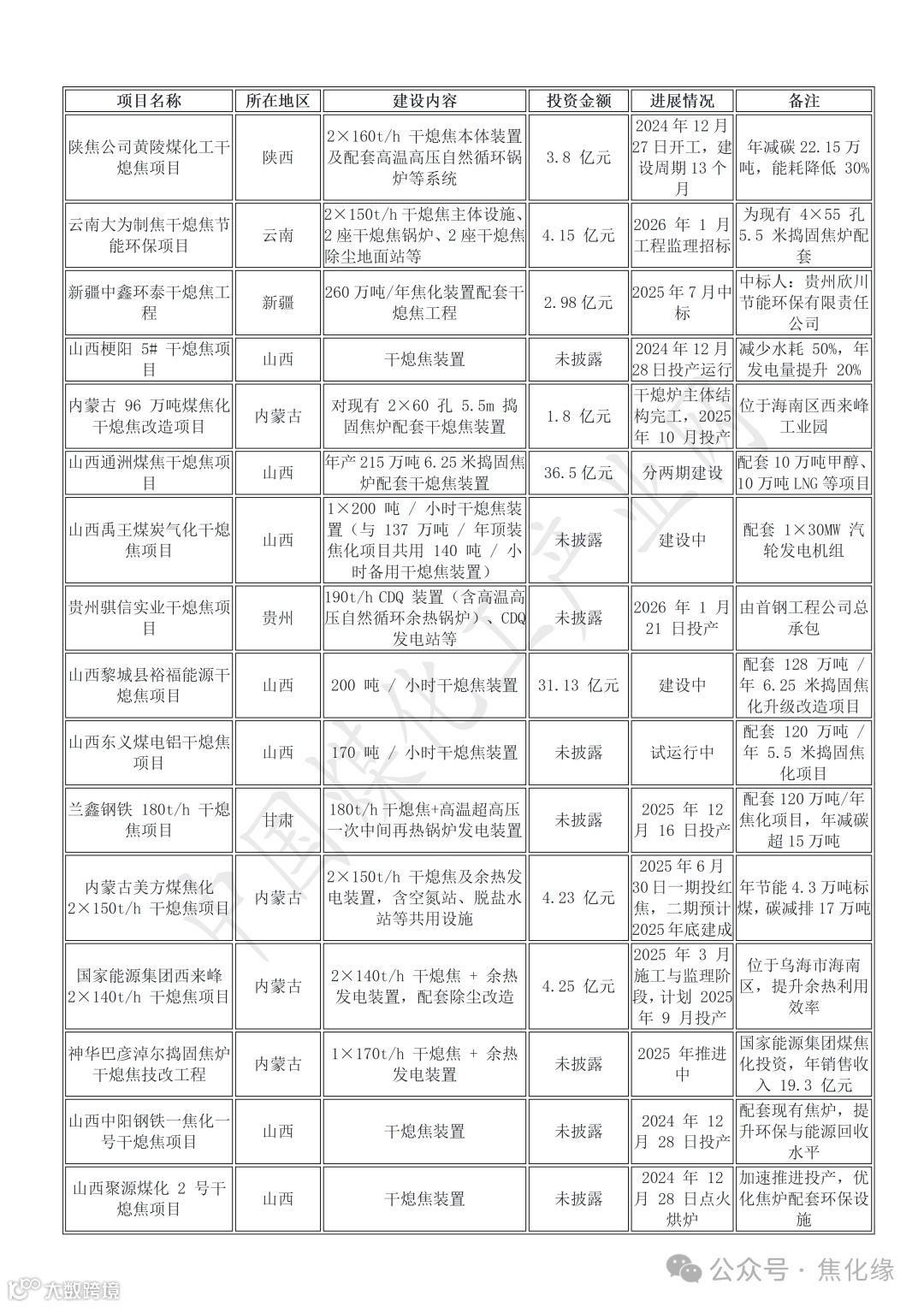 ·环保化:干熄焦技术成为焦化项目超低排放改造核心配置,减少水耗与污染物排放。