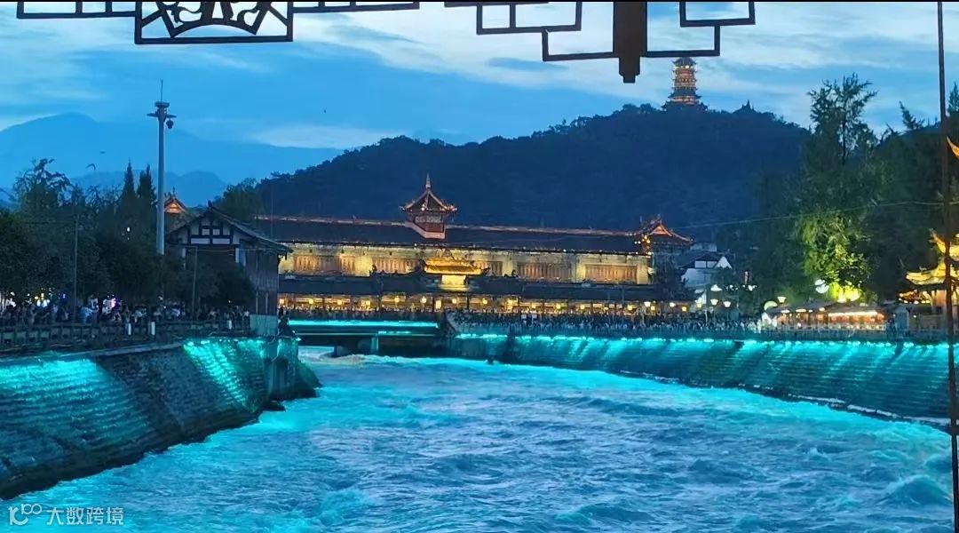 都江堰南桥的“蓝眼泪”实为灯光映照岷江形成的梦幻蓝色光影,并非自然生物发光。夜晚灯光与桥体交相辉映,宛如梦境,极具视觉冲击力。