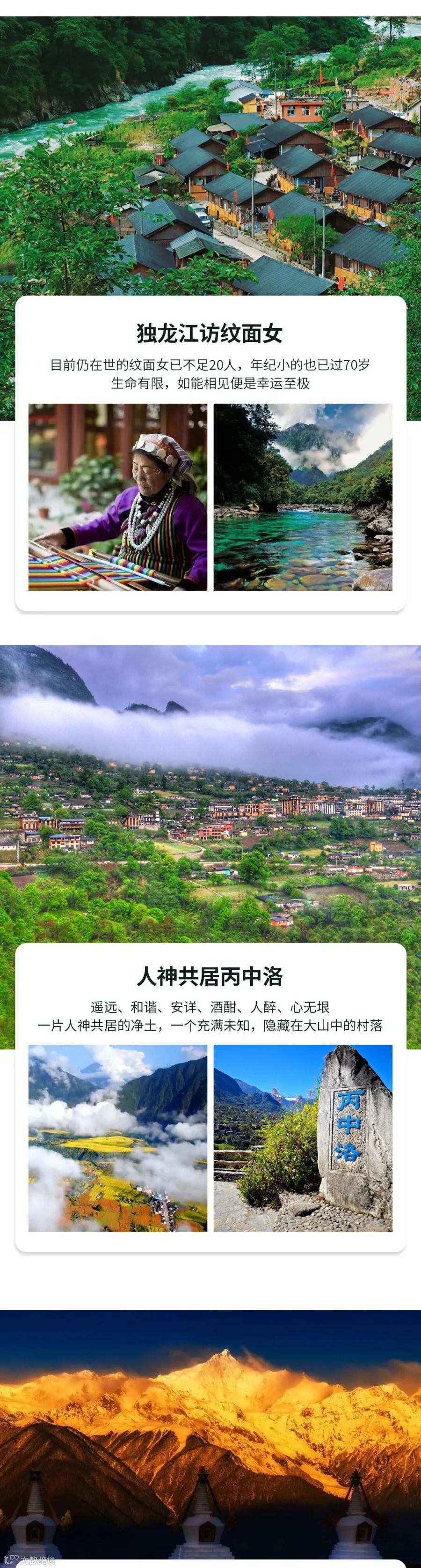 3.如独龙江天气或者政策性原因不能进入,则独龙江更改为:“香格里拉-普达措-中虎跳观景台-哈巴雪山观景台”