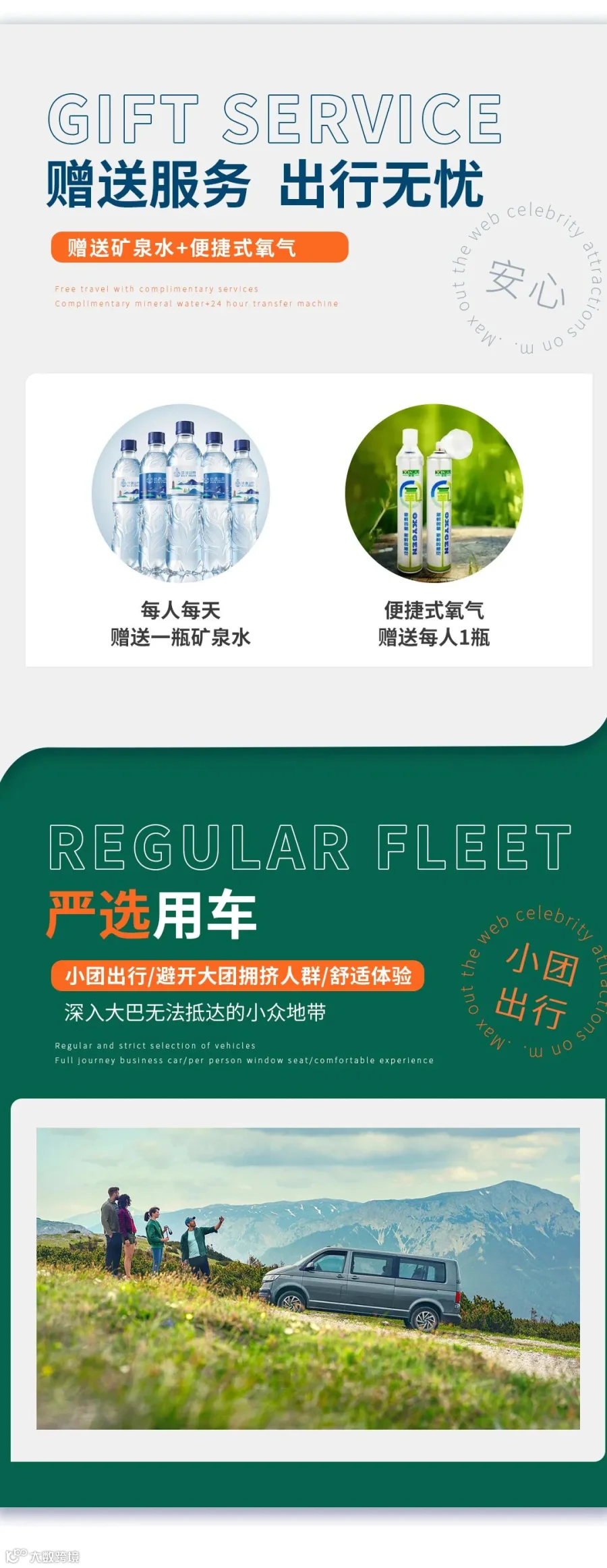 【舒适小团】舒适自在2-8人小团,避开大团嘈杂人群,沿途风景不错过,全程使用5/7/9座车型,随走随停。