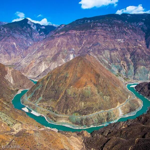 日照金山拍摄结束后前往【金沙江大拐弯】金沙江大拐弯也叫做月亮湾,由北向南纵贯全境的定曲河,在先后接纳了玛伊河和硕曲河之后,携三江之水投入了金沙江的怀抱,在江水汇合处,形成“三壁夹两江”的奇景。穿山越谷而来的金沙江,在即将冲出这川滇要塞之时,放慢脚步,围绕着金字塔般的日锥凤潇洒地画上了一个“U”字形的大拐弯。