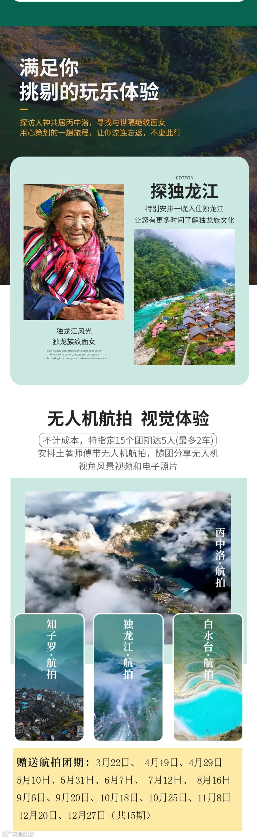 赠送航拍团期共15个团期,每期满5人(最多2车),安排土著师傅无人机航拍体验