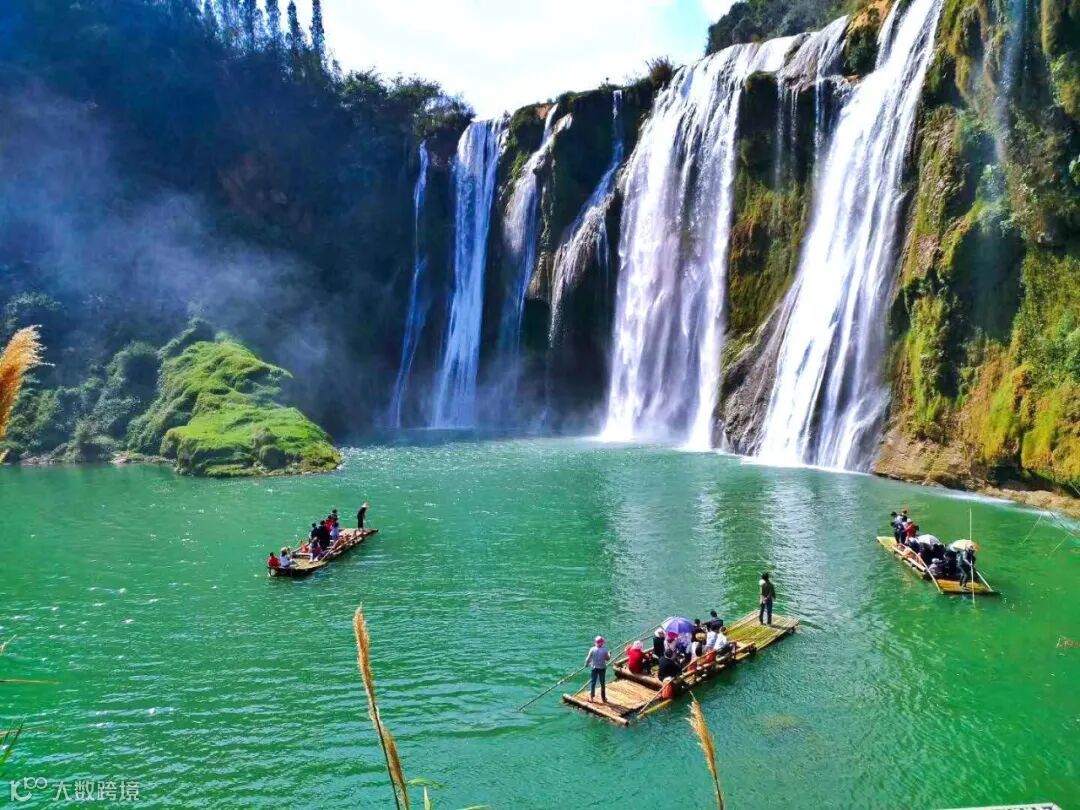 随后驱车前往【九龙瀑布】该瀑布是国内有名的瀑布群景观,是罗平古十景之一的“三峡悬流”所在地。九龙瀑布由于特殊的地质构造和水流的千年侵蚀,在此形成了高低宽窄不等的十个梯级,造就了形态各异气势磅礴的瀑布群。在此我们安排乘坐电动【水上竹筏体验】泛舟河上,闯入山水长卷的画中人。