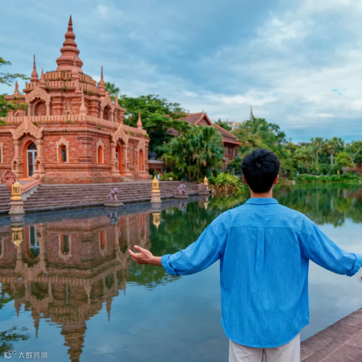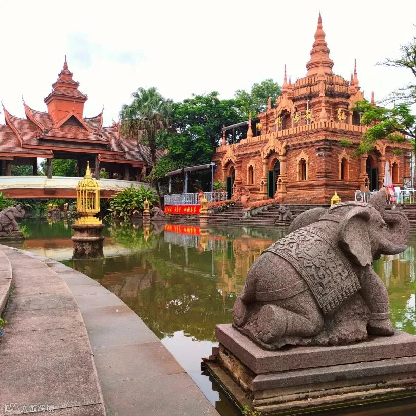 适时前往《边水往事》拍摄地【傣乡水城】沿着河道漫步,两旁的傣族风情建筑映入眼帘,砖红色的墙面在阳光下熠熠生辉,与碧绿的小河、古朴的拱桥相映成趣。在此我们安排【下午茶】,享受片刻休闲时光。