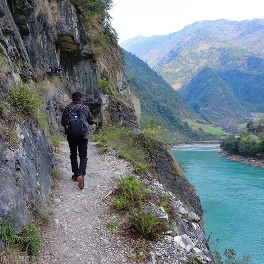 温馨提示:徒步茶马古道时,一边是悬崖,一边是滚滚怒江,拍照时请注意脚下,切勿奔跑和打闹,注意安全。