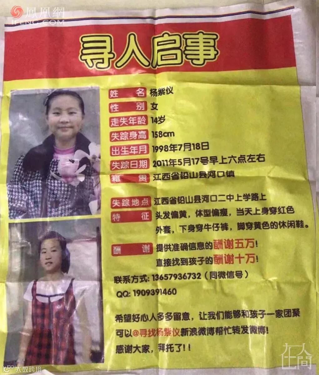 铅山的徐小琴一家常年在外找孩子,后来老公精神抑郁出车祸去世,留下她一人。前几年,徐小琴跟着杜小华各地跑。去年,她股骨头坏死,再也出不了远门。每次杜小华出去找孩子,她就十分着急,叮嘱老杜尽量将女儿杨紫仪的消息散播出去。