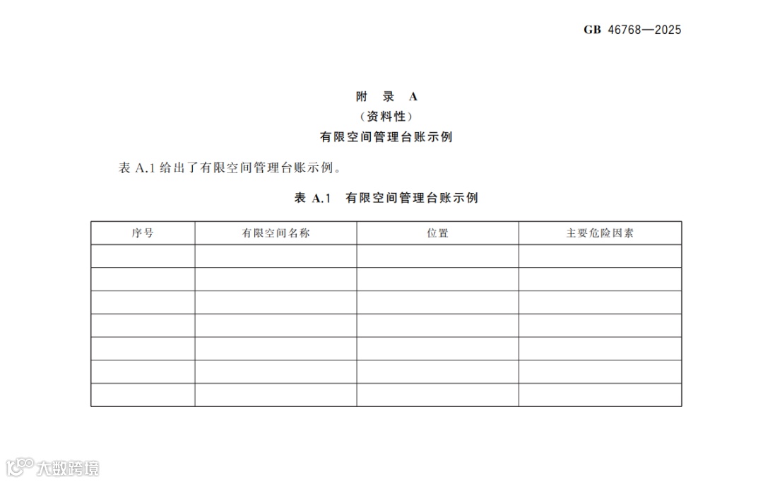 1. 建立管理台账:对有限空间进行全面辨识,明确数量、位置、危险因素等信息,及时更新,鼓励采用信息化技术提升管控水平。
