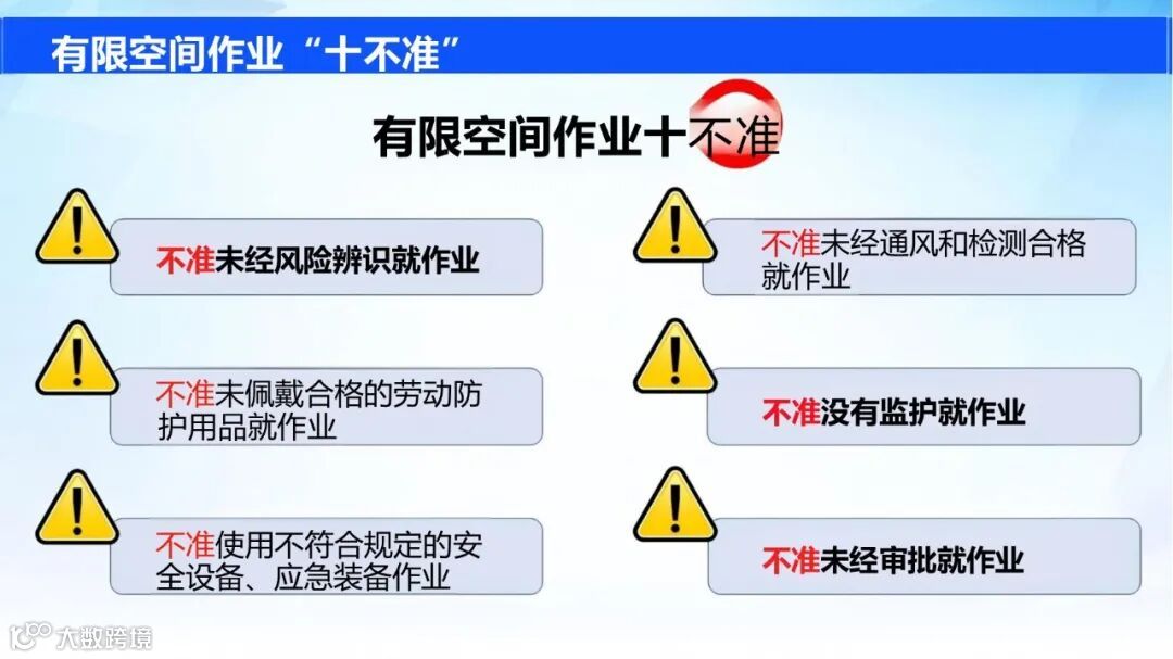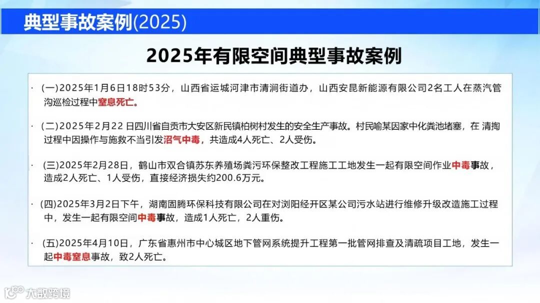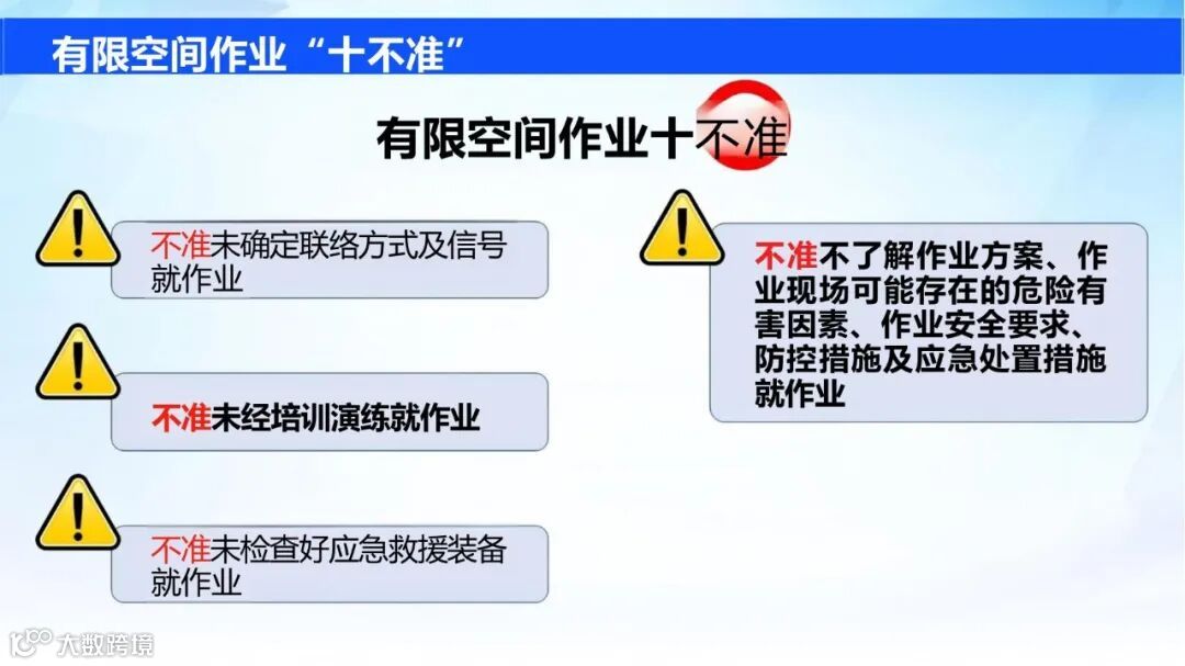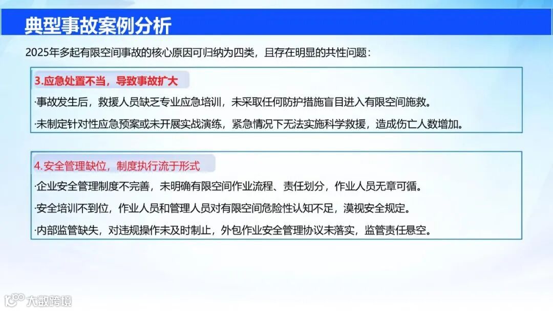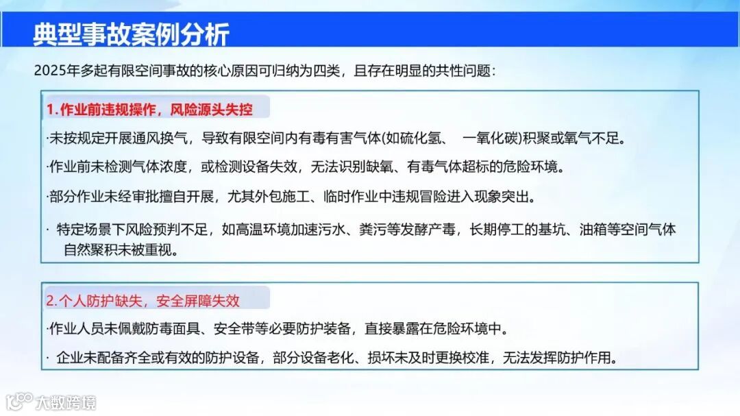 5. 应急处置强化:严禁盲目施救,明确救援装备要求与演练频次,提升应急响应能力。