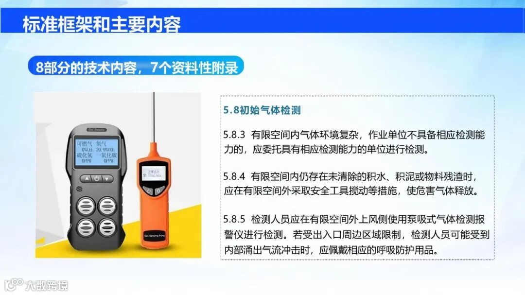 4. 气体检测:使用符合标准的检测仪,竖直空间需检测顶部、中部、底部3个点,水平空间需检测近端、远端2个点,确保无检测死角。检测指标包括氧含量(19.5%-23.5%为安全范围)、有毒气体、可燃气体,可燃气体超标10%需立即报警。检测合格后方可作业,检测记录需完整留存。