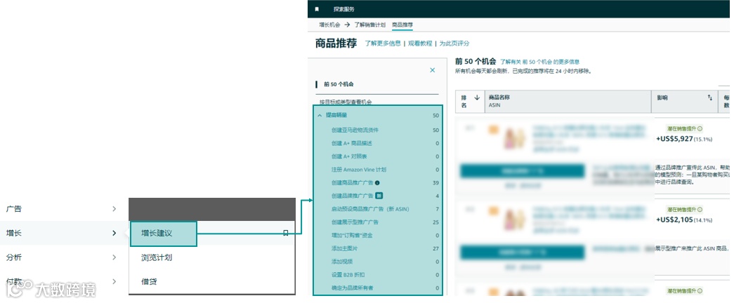 获取亚马逊系统建议,通过该面板可以快速了解,可能由 listing 所导致的潜在增长问题。