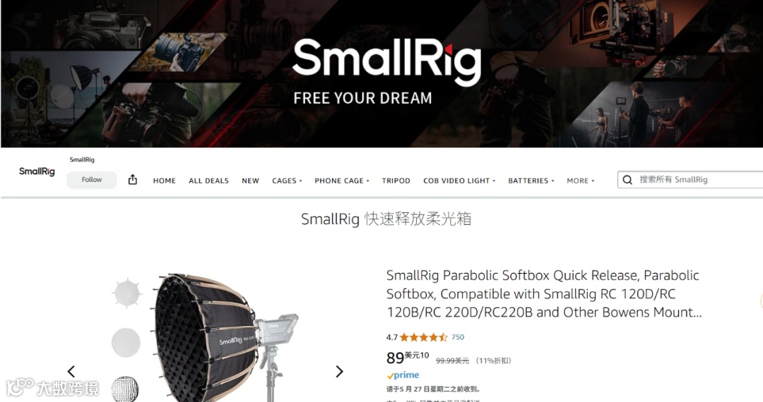 2024年Prime会员日活动中,SmallRig在亚马逊美国站和欧洲站的销售表现尤为显著,美国站销量达5.8倍增长,欧洲站达平时销量的6.2倍。