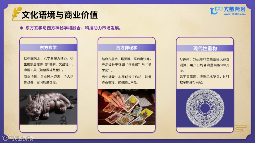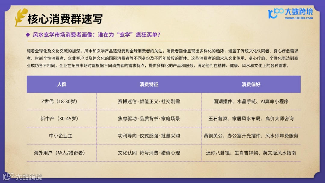 大数跨境(10100.com)推出《2025风水玄学产品出海研究报告》助力相关企业在全球市场的拓展中把握机遇。