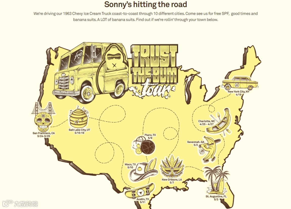Sun Bum经常举办线下活动,如复古雪糕车海岸线巡游,免费派发防晒霜与主题周边,这不仅增强了用户的参与感,也巧妙地塑造出一种“随时可遇见”的品牌形象。消费者在轻松、亲近的互动中,是能够潜移默化地建立起对品牌的情感连接,从而形成更深层次的忠诚度与归属感的。