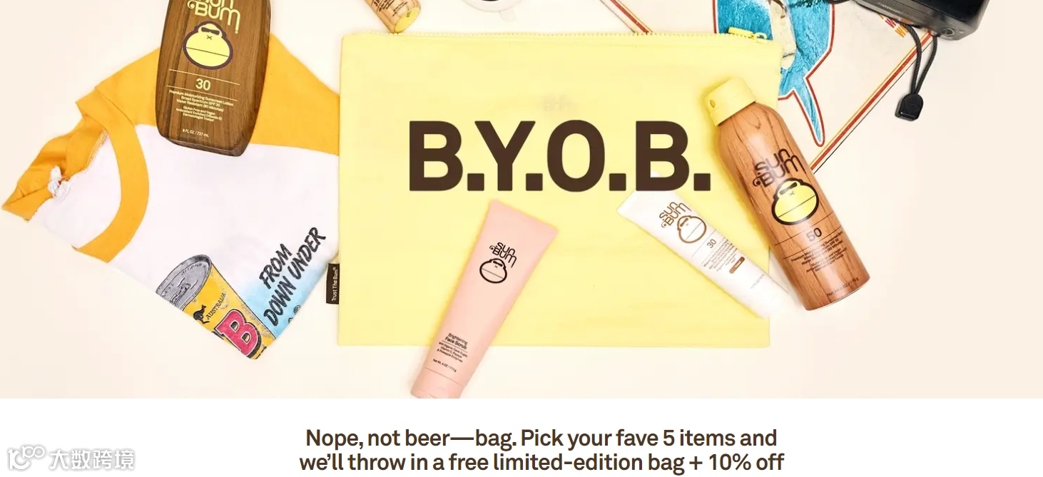 组合优惠:很多消费者其实是有多买一点的意愿的,但在非促销节点、无明显理由的情况下,他们往往会压抑这种冲动。Sun Bum提供自由组合优惠,消费者只需要在专区,选择5件产品即可享受10%的折扣。相较于固定组合,这种方式能够有效降低因产品不合适而犹豫的弃购,从而提升客单价。