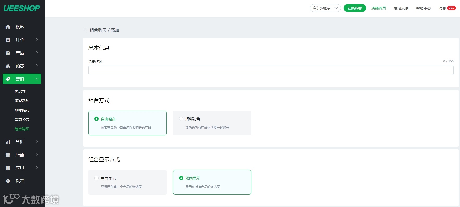 Ueeshop组合购买功能,既可设置固定的捆绑组合,也可设置组合购买专区,这能够帮助卖家更加灵活地调整捆绑销售策略,从而提升捆绑销售对消费者的吸引力,进而为网站带来更高的销量。