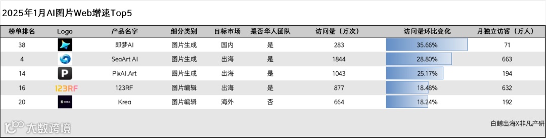 本篇发布的榜单为第 7 期 2025 年 1 月 AI 图片 web & App 榜。