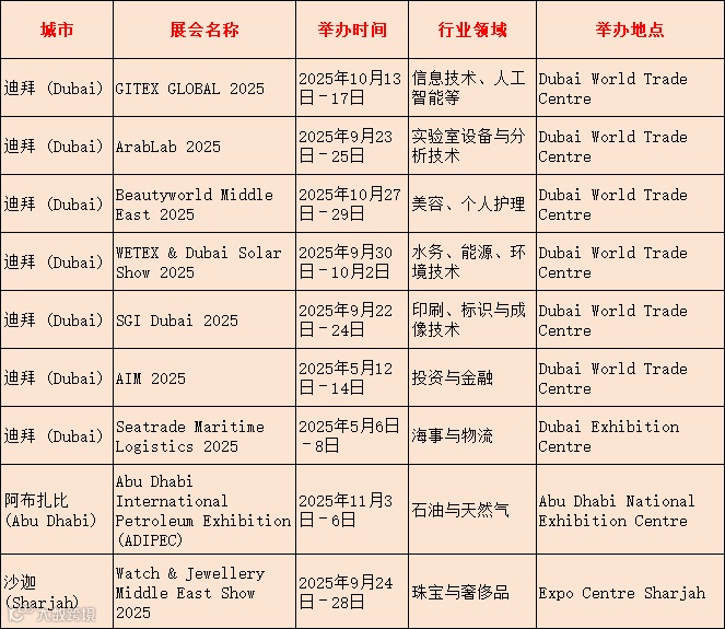 阿联酋每年也是会有不少的国际性展会,有条件可以参加一下。