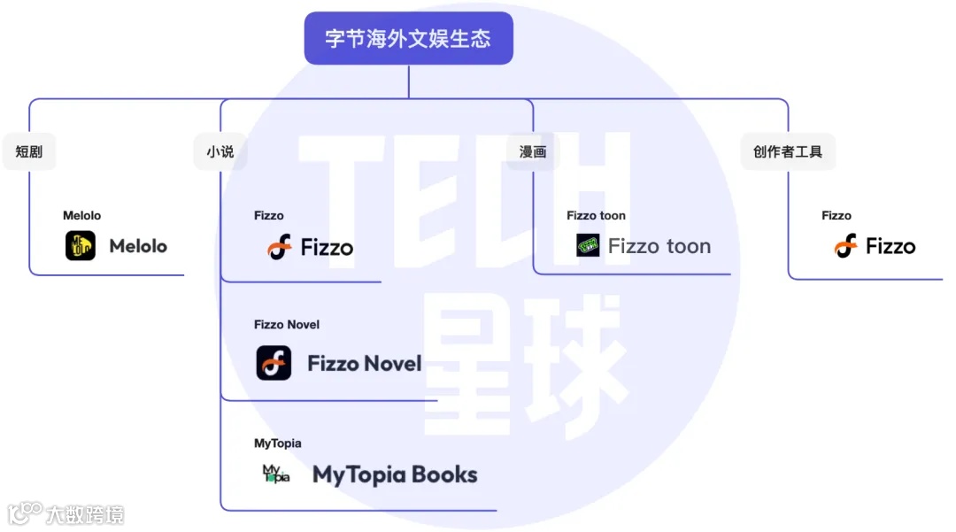 Melolo 是字节海外文娱生态的重要一环。目前,字节旗下产品已涵盖小说、漫画、短剧等多个领域,形成 Fizzo、Fizzo Novel、My Topia 和 Fizzo Toon 等产品矩阵。