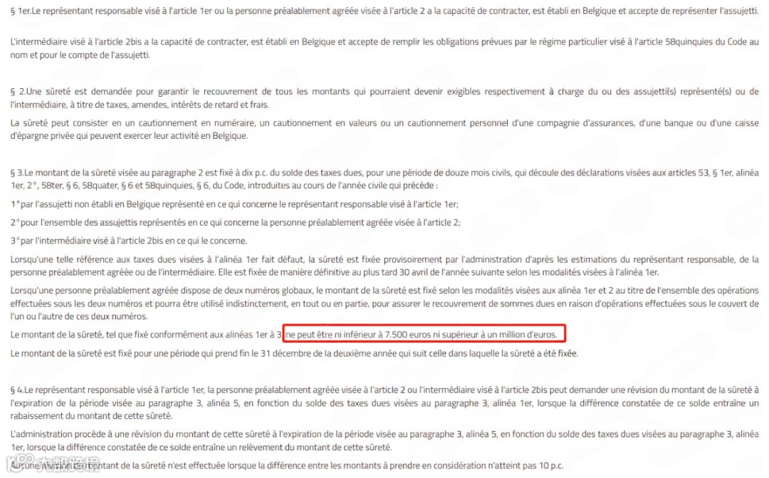 比利时税局官方从2021年明确公告,非欧盟公司在比利时注册税号时,最低需缴纳保证金7500欧起。