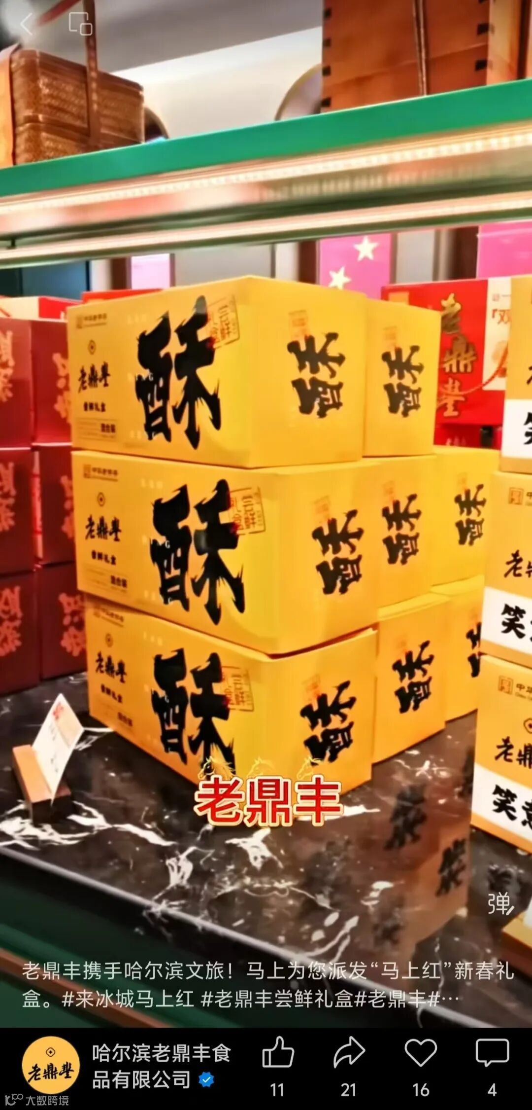 哈尔滨极地公园、老鼎丰、张亮麻辣烫、秋林马尔斯大虾酥糖、非遗超越糖果、乔府大院、希尔顿酒店眼罩等本土品牌第一时间响应,拿出各自的明星产品与限定年礼,与文旅部门联手将品牌温度与城市记忆同装一盒,让物产之美与人文之韵在开箱瞬间扑面而来——这,就是冰城待客的实在与排面。