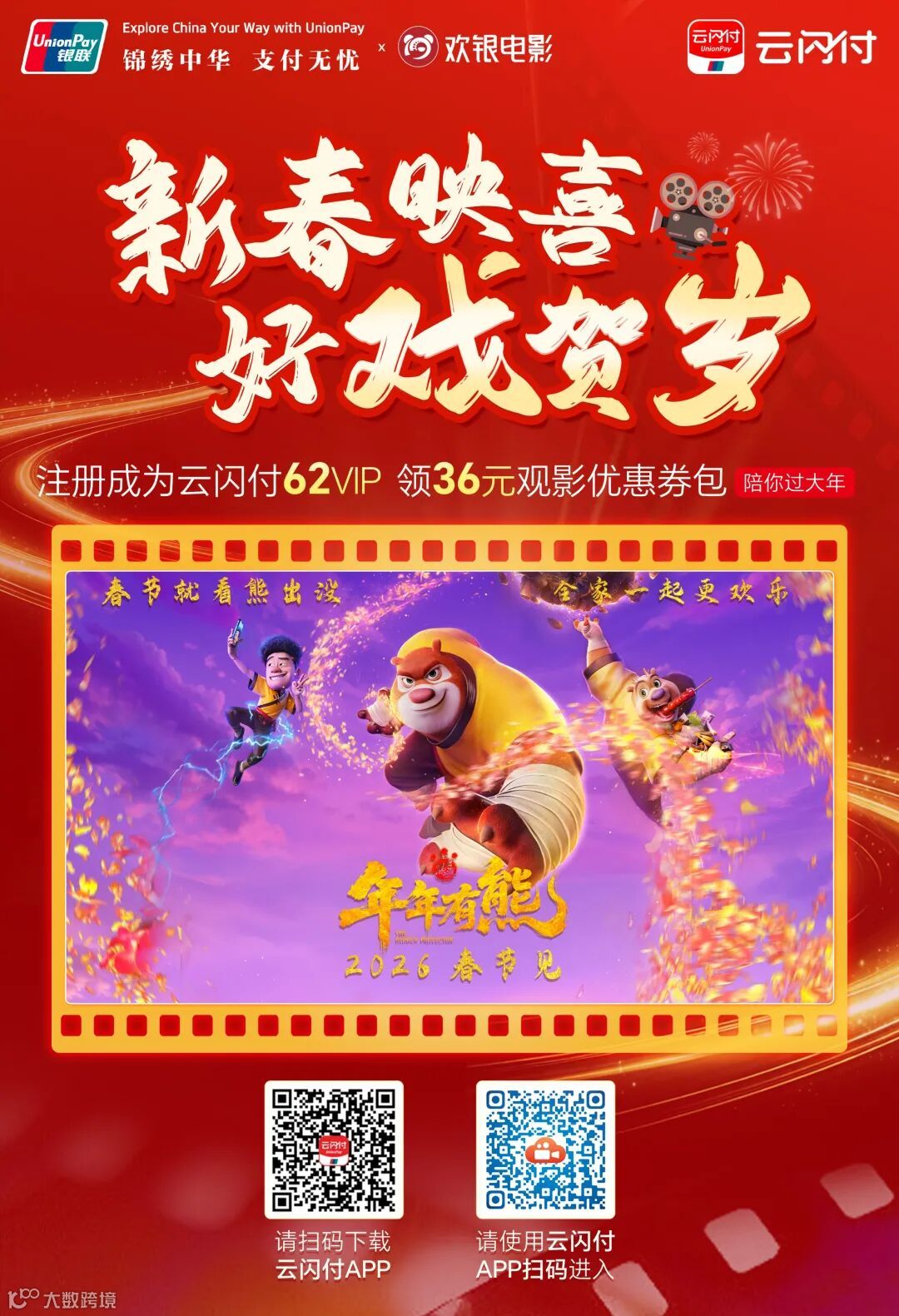 1、观影礼遇云影票36元观影券:即日起至2026年2月28日,兑换优惠券,打开云闪付APP搜索“云影票”小程序获取优惠券。